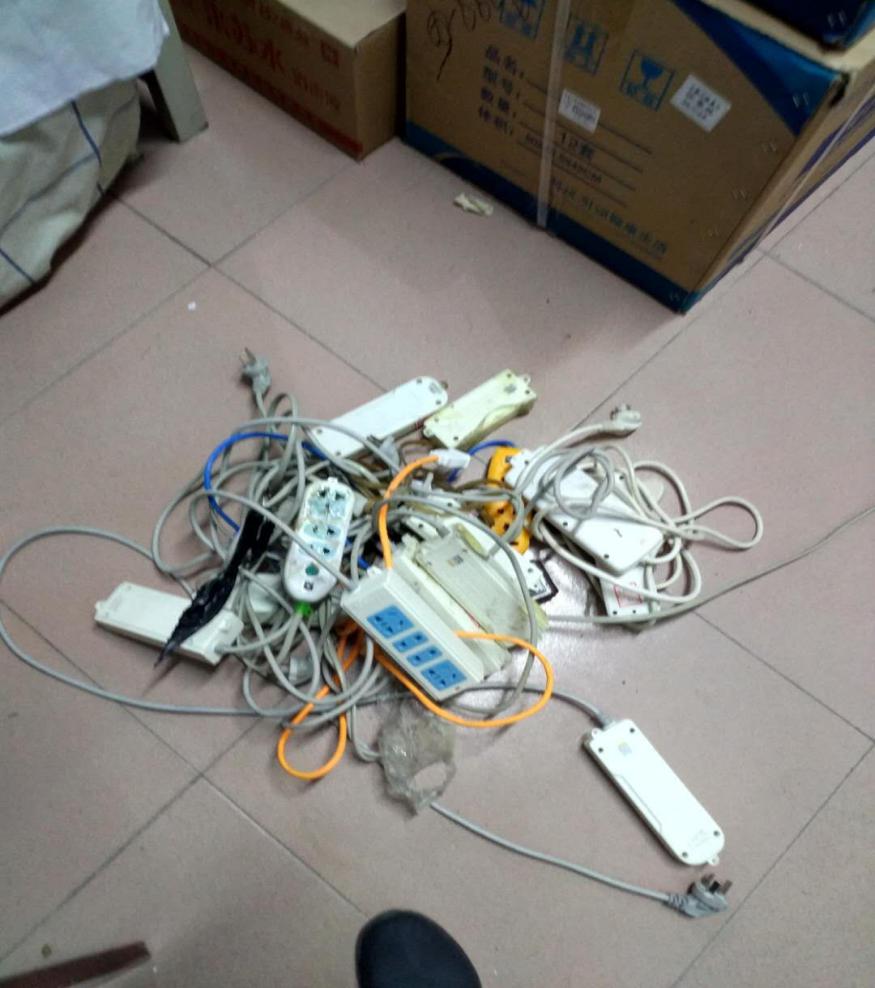 很多插线板随意摆放在褥子上,极易造成火情,存在触电隐患,本次检查共收缴插线板 233个。