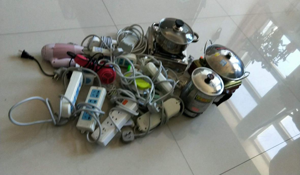 此次安全检查工作中,发现违规电器霓虹灯2串,电夹板6酒精炉5个,电褥子1个,热得快2个。
