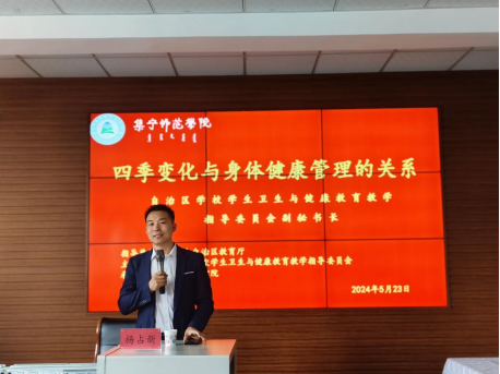 5月23日下午,在泉山校区主教学楼219室举办了“四季变化与身体健康管理的关系”为主题的培训会。各部门、各二级学院教职工代表、校医务室负责人、学生公寓负责人、心理教师、专职辅导员参加培训。自治区学校卫生与健康教育教学指导委员会副秘书长杨占新从传统医学出发,把人生分为四季,一天分为四季,从四季的变化来阐述健康的生活方式及健康管理知识,并分享了健康管理经验和方法,教职工受益匪浅。
