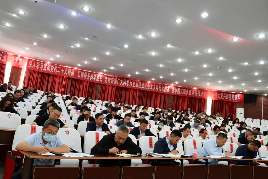 9月12日,beat365在线唯一官网党委理论学习中心组(扩大)2023年第12次集体学习会在泉山校区图书馆报告厅召开。校党委书记朱玉东主持会议。党委副书记、校长刘春,党委副书记梁政,副校长李凤斌,党委委员、纪委书记赵永军,党委委员、副校长李景杰、拓俊杰出席会议,全校副处级以上干部参加会议。