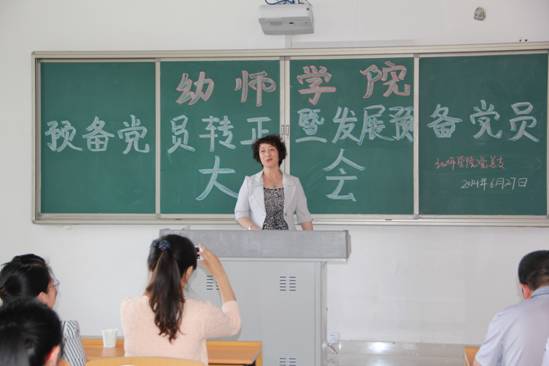 2014年6月27日下午,幼师学院在beat365在线唯一官网白海校区1号教学楼31112多媒体教室召开学生预备党员转正暨发展预备党员大会,大会由幼师学院学生党支部书记李学敏老师主持。出席本次大会的有幼师学院党总支书记、党总支副书记、党总支委员、学生党支部书记、教工党支部及学生党支部成员。