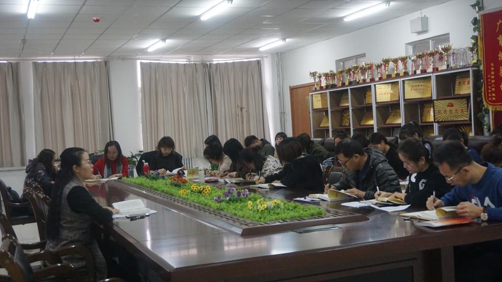 会议开始,由教师党员安雅嘉领学10月31日十九届四中全会通过的《中共中央关于坚持和完善中国特色社会主义制度推进国家治理体系和治理能力现代化若干重大问题的决定》中的前三部分内容。