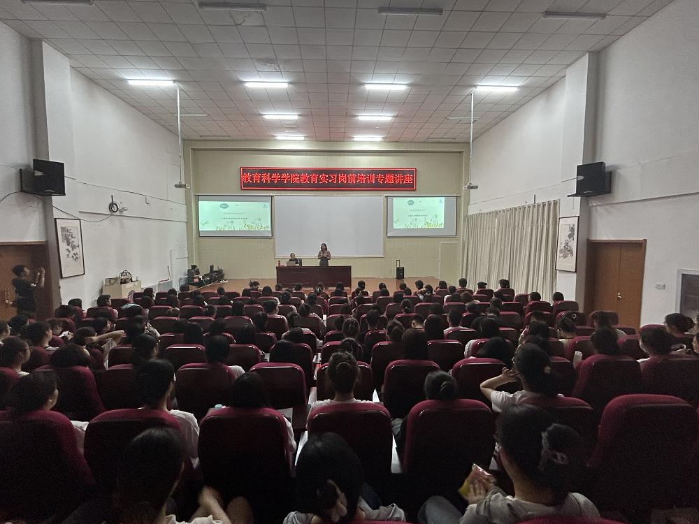 为了能进一步加强实习生的规范化管理,提高实习质量,让学生在实习上岗前尽快熟悉实习流程,提前适应实习工作和生活,教育科学学院于7月5日举行了2024届毕业生教育实习岗前培训。