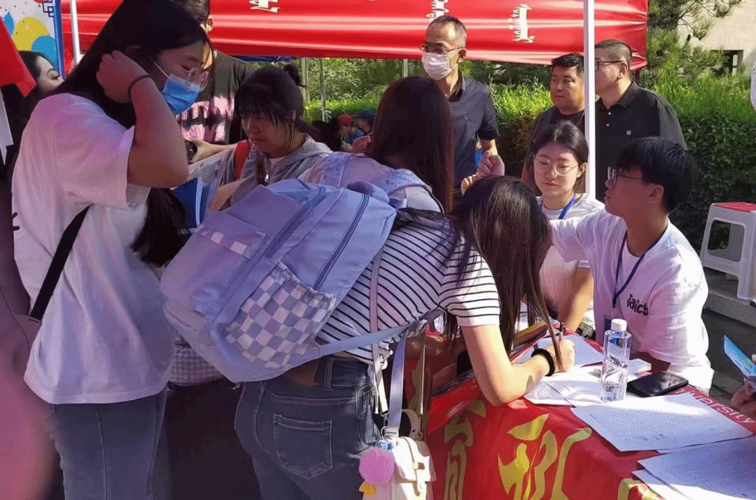 早已各就各位的老师、学生会成员和志愿者们热情迎接新生。志愿者们穿着统一服装,忙碌地穿梭于校园,为新生及家长指引方向、搬运行李,成为一道引人注目的风景。报到处秩序井然,工作人员耐心处理入学手续,解答疑问,亲切的笑容和积极态度让新生感受到学校的关怀与温暖。