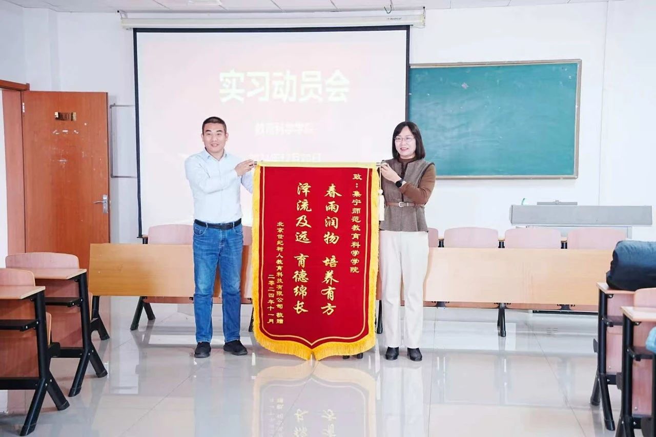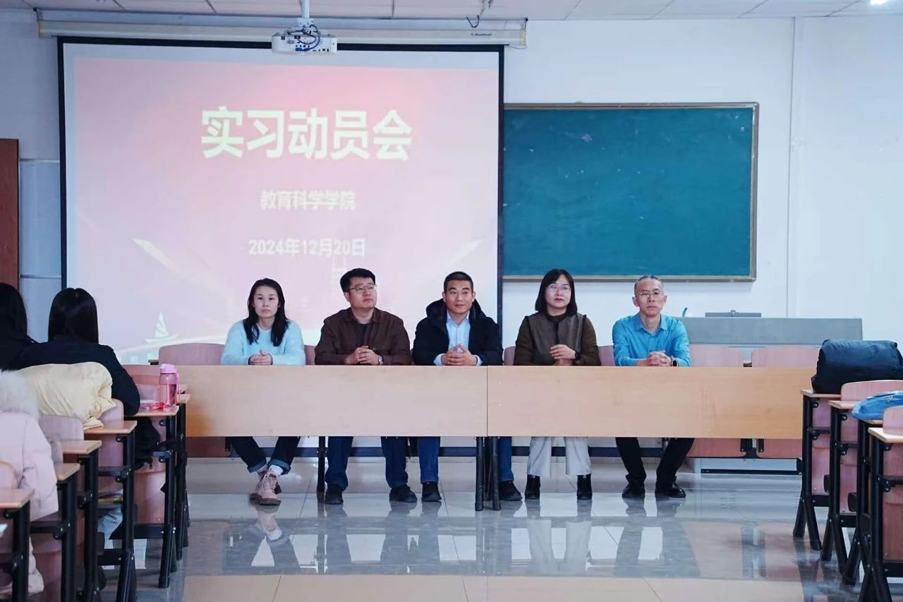 为了使预毕业生充分认识到教育实习的重要性,确保实习工作顺利开展,教育科学学院于12月20日召开实习动员大会。本次大会由学院副院长沈剑主持,院长赵晓英、党总支副书记韩超、辅导员杜贵荣出席会议。会议特别邀请实习单位世纪树人教育科技有限公司李庆龙老师出席活动。