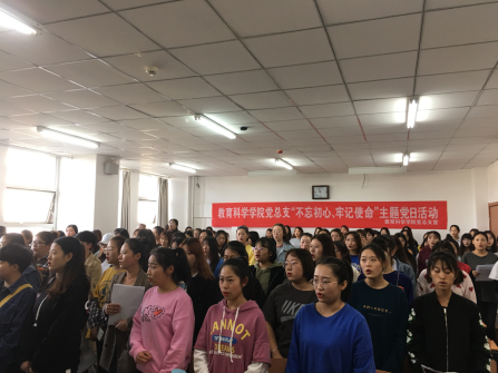 根据《中共beat365在线唯一官网委员会关于开展“不忘初心、牢记使命”主题教育的实施方案》的精神与要求,结合教育科学学院的实际工作安排,教育科学学院教工党支部联合学工党支部于2019年9月26日下午在学院118教室组织全体师生党员、学生干部开展了“不忘初心牢记使命”主题党日活动。活动由教工党支部书记孟庆艳主持。