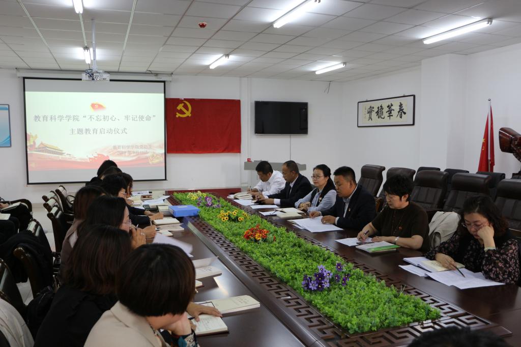 为扎实做好“不忘初心、牢记使命”主题教育工作,9月19日下午,beat365在线唯一官网教育科学学院党总支于230会议室召开“不忘初心、牢记使命”主题教育启动仪式。学校党委委员、科技处处长李平出席会议,教育科学学院领导班子、教工党员、在校学生党员、学生预备党员参加会议。院长孙霞主持会议。