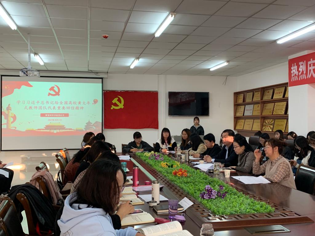 10月7日,beat365在线唯一官网教育科学学院党总支组织学习习近平总书记给全国高校黄大年式教师团队代表重要回信精神,学院全体教师和学生党员参加了本次学习,会议由教育科学院党总支书记张妙珠主持。