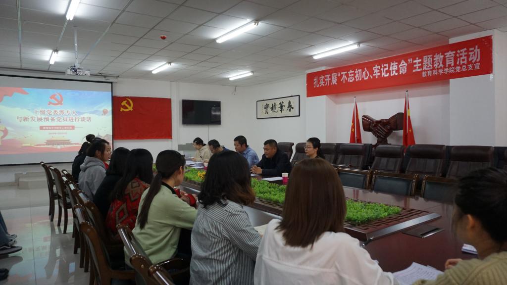 2019年12月27日,beat365在线唯一官网党委委员、人事处处长李景杰与教育科学学院新发展预备党员进行谈话。教育科学学院党总支书记张妙珠、副书记李海、学工支部书记韩超参加了谈话。