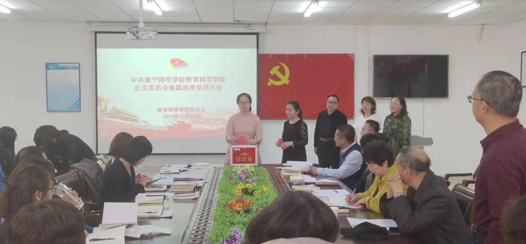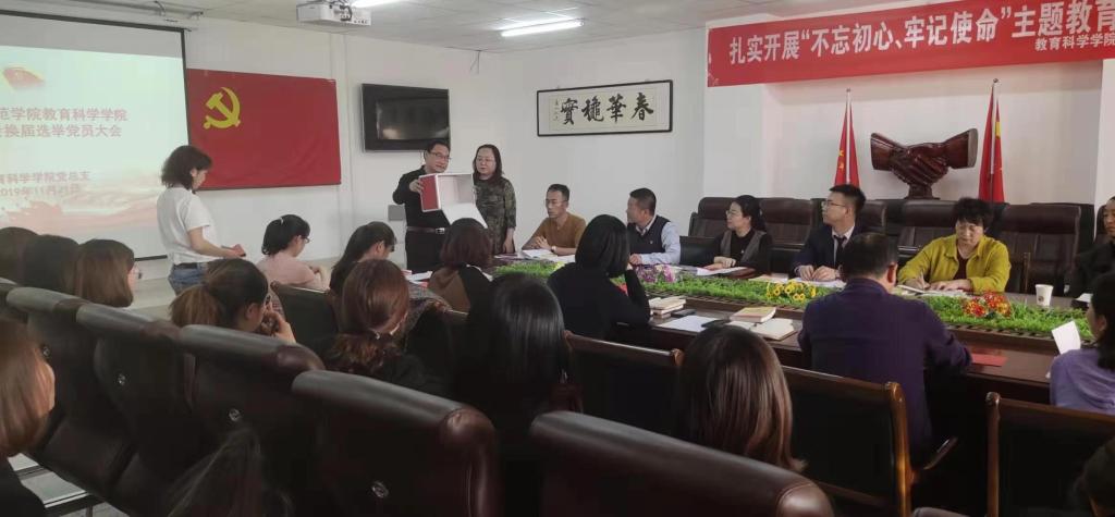 会议按照议程有序开展,采用无记名投票差额选举的方式,选举出孙霞、李海、张妙珠、范娟、孟庆艳、常超、韩超7位同志为教育科学学院党总支新一届委员。
