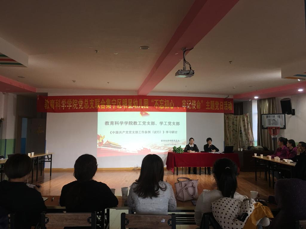 为深入学习贯彻《中国共产党支部工作条例(试行)》精神,加强党的组织建设,11月14日下午,教育科学学院教工支部、学工支部召开《中国共产党党支部工作条例(试行)》学习研讨会,会议由教育科学学院党支部书记张妙珠主持,全体师生党员参加。