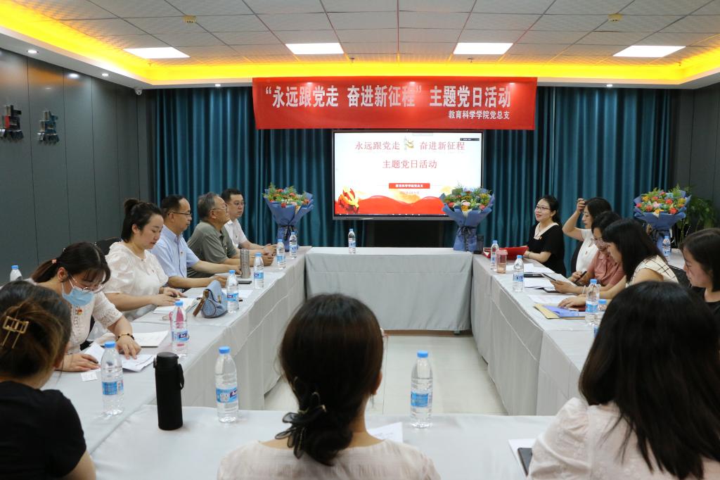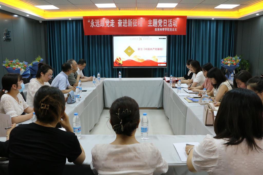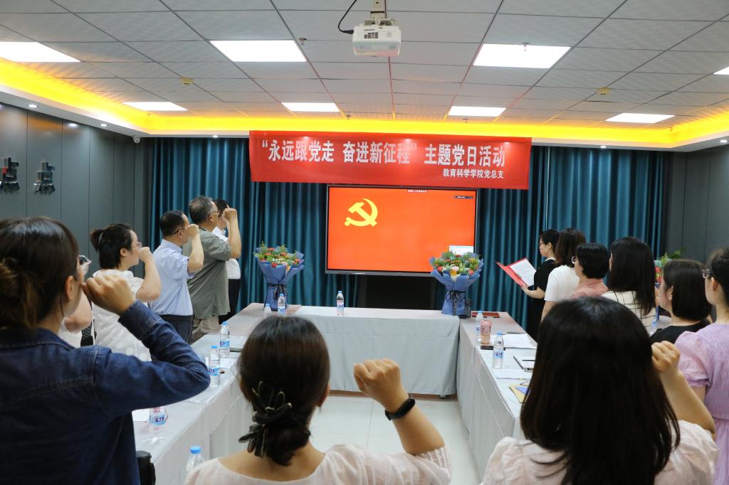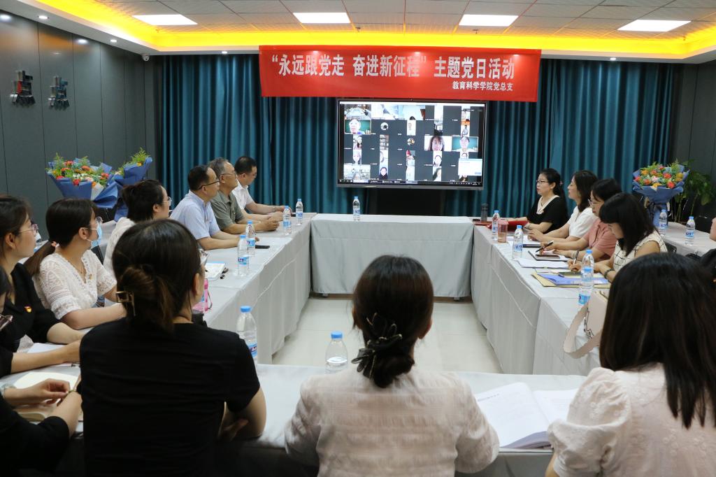 在即将迎来中国共产党101周年华诞之际,6月30日,教育科学学院党总支组织召开了“永远跟党走 奋进新征程”主题党日活动。活动由党总支书记张妙珠主持,以线上线下相结合的方式开展,学院全体师生党员以及退休老党员代表参加了活动。