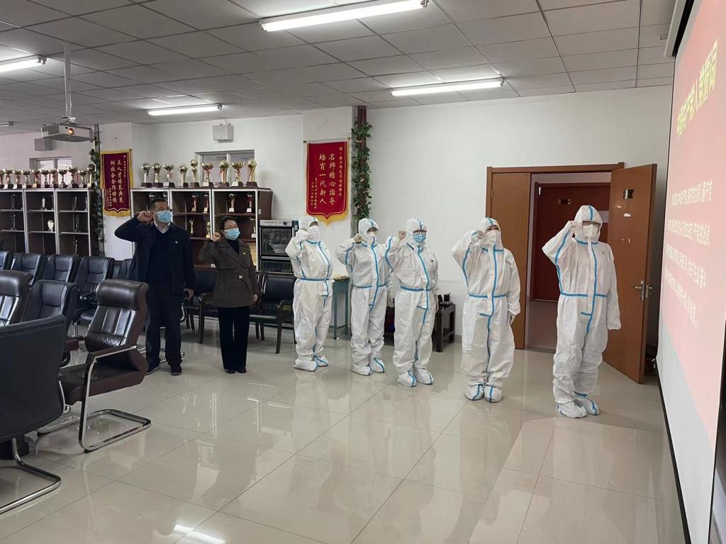 已连续几日奔忙在核酸检测一线的党员教师们,庄严肃穆,激情澎湃,面对党旗重温入党誓词,再一次向敬爱的党做出“对党忠诚,积极工作,为共产主义奋斗终身”的承诺。