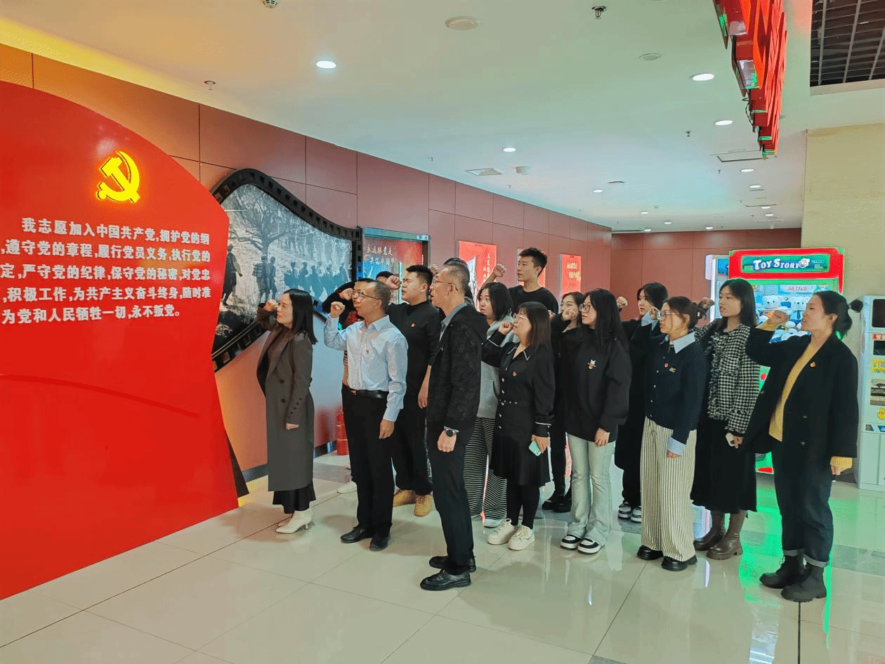 全体党员面向鲜红的党旗,庄严地举起右拳,重温了入党誓词。铿锵恢宏的誓词,见证了党员们的庄严承诺和初心使命。