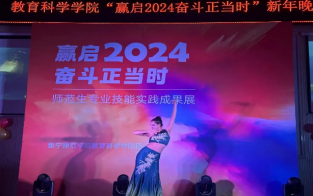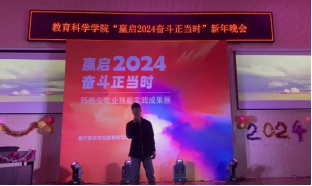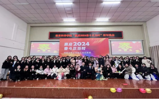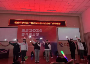 2023年12月28日,教育科学学院举办了“赢启2024,奋斗正当时”迎新年晚会。教育科学学院领导班子,学工办、班主任、辅导员及300余名学生参加了本次晚会。