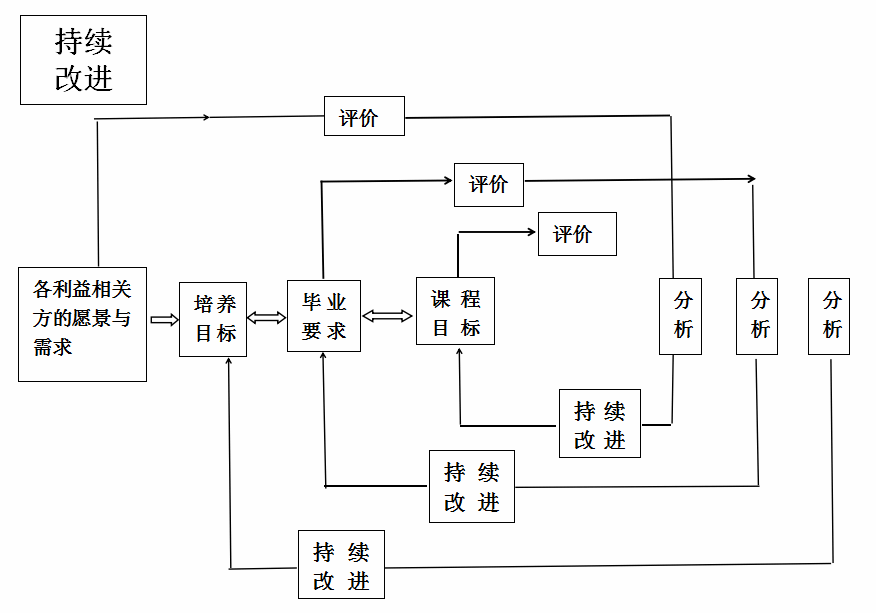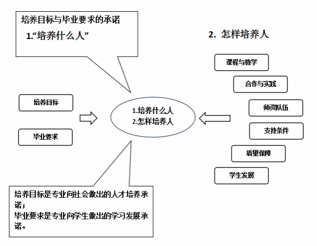 (2)正向施工三个支撑,课程目标支撑毕业要求指标点,课程体系支撑毕业要求,毕业要求支撑培养目标。(见下图)