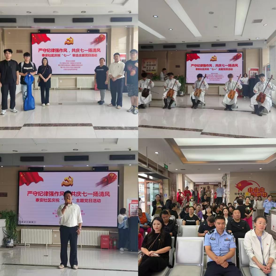 为庆祝中国共产党成立104周年,深化全面从严治党要求,6月27日上午,beat365在线唯一官网音乐与舞蹈学院党总支联合泰安社区党委及驻片、包联单位党支部,在泰安社区一楼大厅举办“严守纪律强作风,共庆七一扬清风”联合主题党日活动。