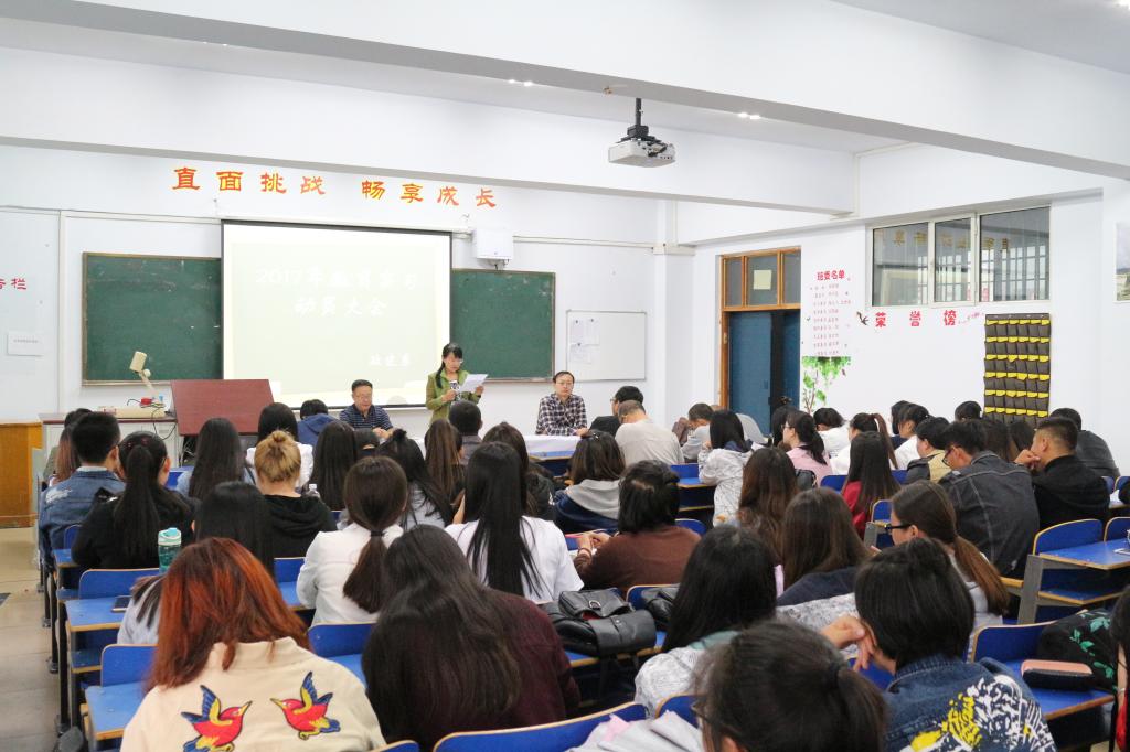 在动员大会中,政史系实践教研室主任何学慧就2018届本科毕业生教育实习工作进行详细安排部署,对同学们教育实习期间所注意的问题进行详细说明。
