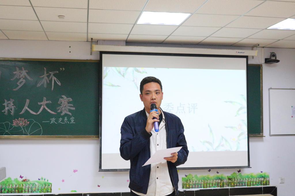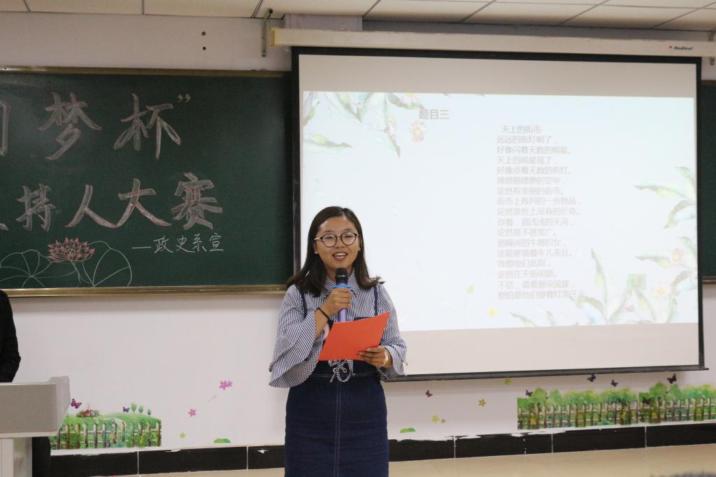 2017年9月28日下午七点,由政史系团总支学生会举办的“圆梦杯”主持人大赛顺利举行。团总支书记辛飞、学工办主任田博、学生党支部书记韩宁、青年教师成格乐图及来自各个系的学生干部代表担任大赛的评委和嘉宾。