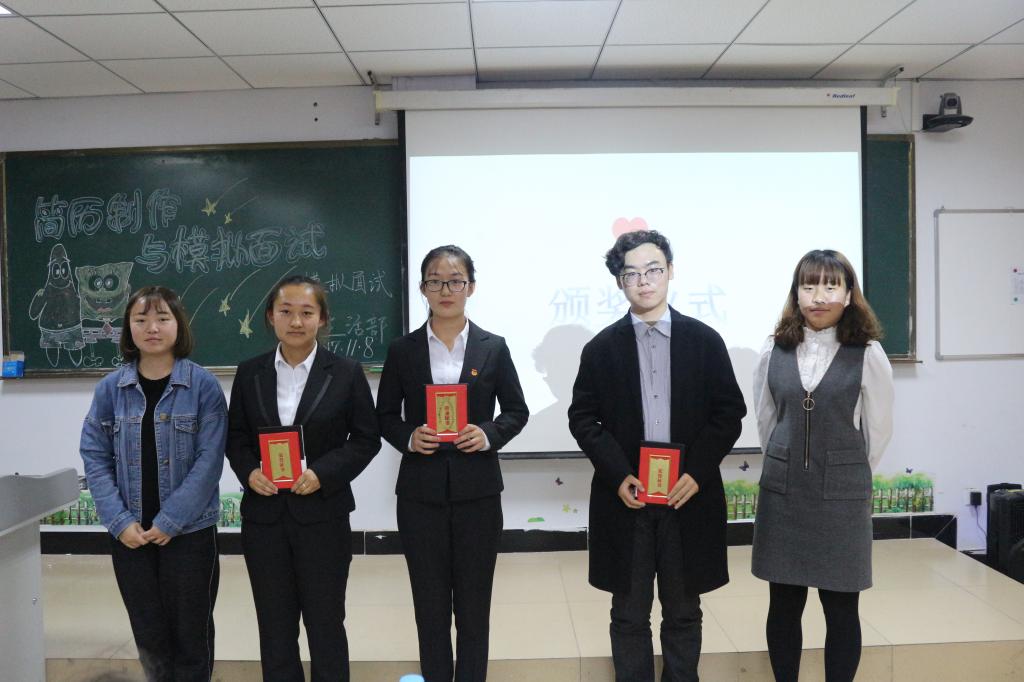 选手们的简历制作与模拟面试结束后,部长对每位选手的表现进行点评指出了不足之处,并对获奖选手进行颁奖本次活动圆满结束!