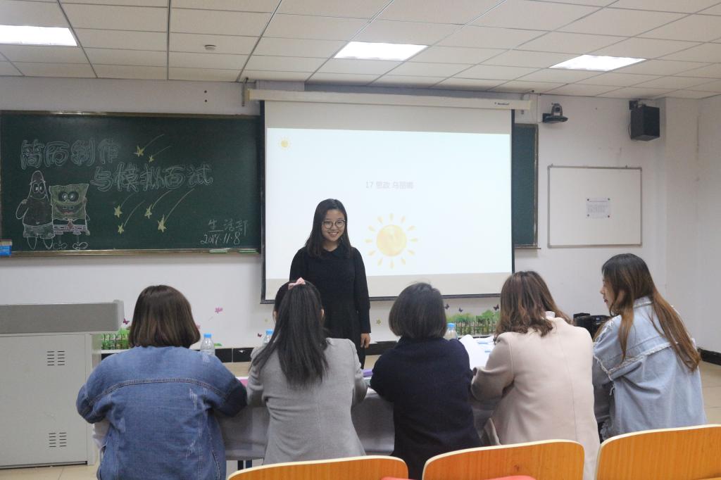 2017118日,我系简历制作与模拟面试比赛于主教楼420举行。学生会部分部部长担任本次比赛的评审人员。参加本次活动的选手通过提前上交的个人简历和现场问答的面试形式进行参赛。每名参赛选手都对自己进行了简单详细的自我介绍,模拟面试以个人面试的职业岗位展开,每位参赛选手都充分展现出自己对待面试岗位的自信和热情,并在评审人员的提问中充分展示个人的工作态度,工作方法以及处理问题的能力,在每位选手身上,我们都看到了来自新一代青年学生不同的风采。