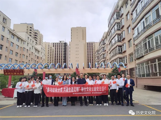 历史文化学院与集宁区常青街道佳美社区新时代文明实践站联合举办“参与垃圾分类 共建生态文明”联合党委主题党日活动