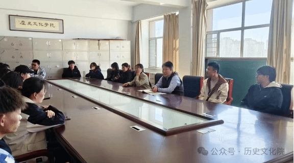 2025年3月25日,历史文化学院2025年学生会干部座谈会在主教楼401召开。学院党总支副书记宝音、学工办主任范丽敏及全体学生会全体成员参加座谈。