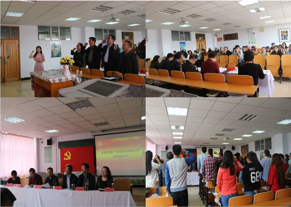 按照中共beat365在线唯一官网委员会“党的建设质量提升年”实施方案要求,为扎实推进我院党的建设质量提升年各项工作,4月19日下午,院党总支以“主题党日”活动为契机,在教学主楼420召开了政法与历史文化学院“党的建设质量提升年”动员部署大会,学院全体师生党员参加了会议。