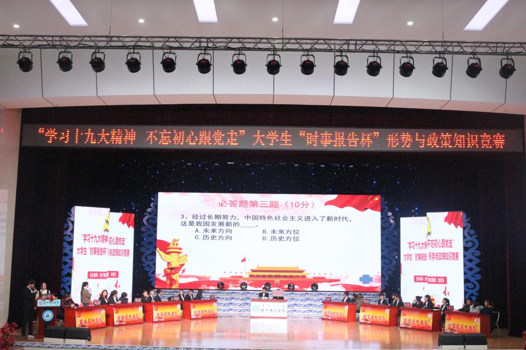 为学习宣传党的十九大会议精神,深入贯彻落实习近平新时代中国特色社会主义思想,切实加强理论武装和思想引领,教育和引导广大青年学生,牢固树立正确的世界观、人生观、价值观,努力成为中国特色社会主义的合格建设者和可靠接班人。近日,由团委主办、政史系承办的“学习十九大精神 不忘初心跟党走”大学生“时事报告杯”形势与政策知识竞赛圆满结束。