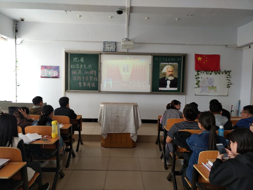 随后,在2Z402教室组织观看了习近平总书记在“纪念马克思诞辰200周年大会”上的重要讲话直播视频。同学们纷纷表示,作为思想政治教育专业的学生,我们要继续深入学习马克思主义,继续推进马克思主义中国化,不忘初心,牢记使命,深入学习好、宣传好、贯彻好新时代中国特色社会主义思想这一当代中国马克思主义,为实现中华民族伟大复兴而努力奋斗。