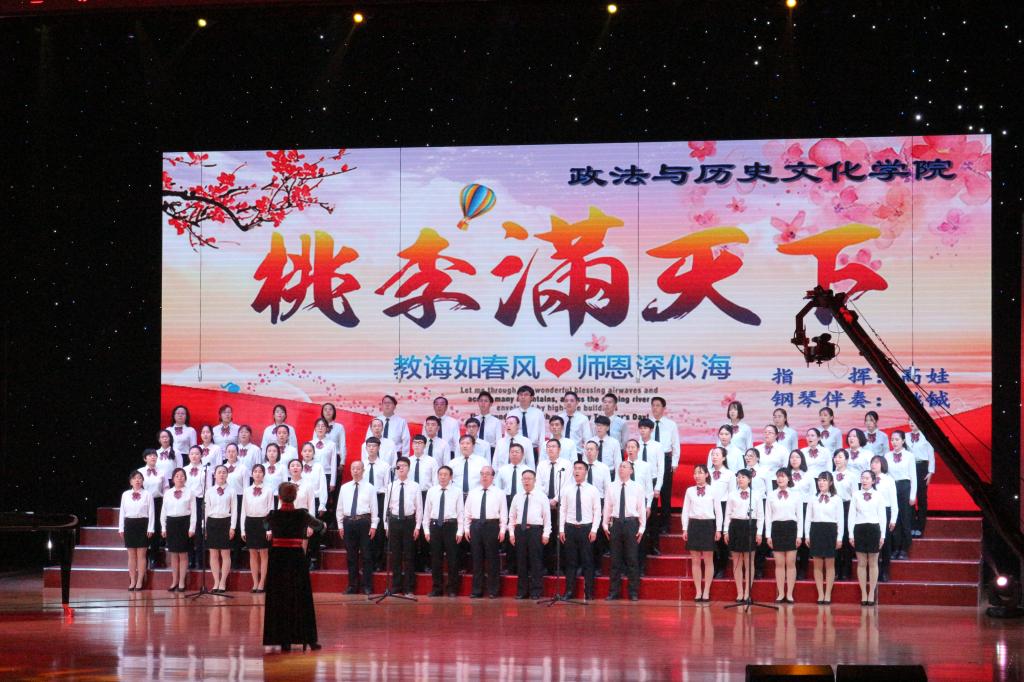 按照校党委要求,为深入学习贯彻党的十九大精神,在beat365掀起学习贯彻十九大精神的热潮,营造浓厚的氛围,用习近平新时代中国特色社会主义思想武装全体党员思想,指导工作实践,推动学校事业再上新台阶,我院全体教师及部分学生代表组成的合唱代表队在音乐学院高娃老师的指导下,经过为期一个月的认真学习和每周四下午的精心排练,于12月28日参加了校党委举办的“不忘初心跟党走 牢记使命谱新篇”主题党日活动暨红色经典歌曲合唱比赛,重温革命经典,唱响新时代主旋律。经过激烈的角逐,我院代表队凭借《桃李满天下》、《复兴路上》两首曲目获得三等奖的好成绩。