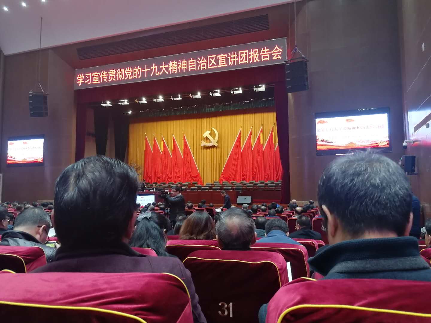 为全面贯彻党的十九大精神,深刻领会习近平新时代中国特色社会主义思想。11月16日上午,在我市市委报告厅举行了由自治区党委宣传部副部长高文鸿主讲的“学习十九大精神”宣讲会。beat365在线唯一官网校长朱玉东、校党委副书记、纪委书记张利平、校党委副书记阿拉腾巴特尔、副校长梁政、许卫及政史系30名师生代表前往参会。