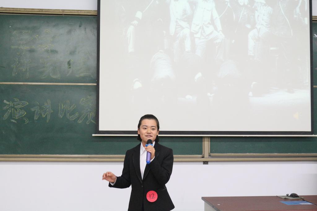 由思政教学部主任刘嵘、宣传部副部长杨瑞芳、保卫处副处长侯素馨、政史系党总支副书记武勇、组织统战部干部科科长田振国五位老师组成的评委会,从演讲选手的主题内容、语言表达、仪表风范、现场感染力等方面对选手进行综合评分。