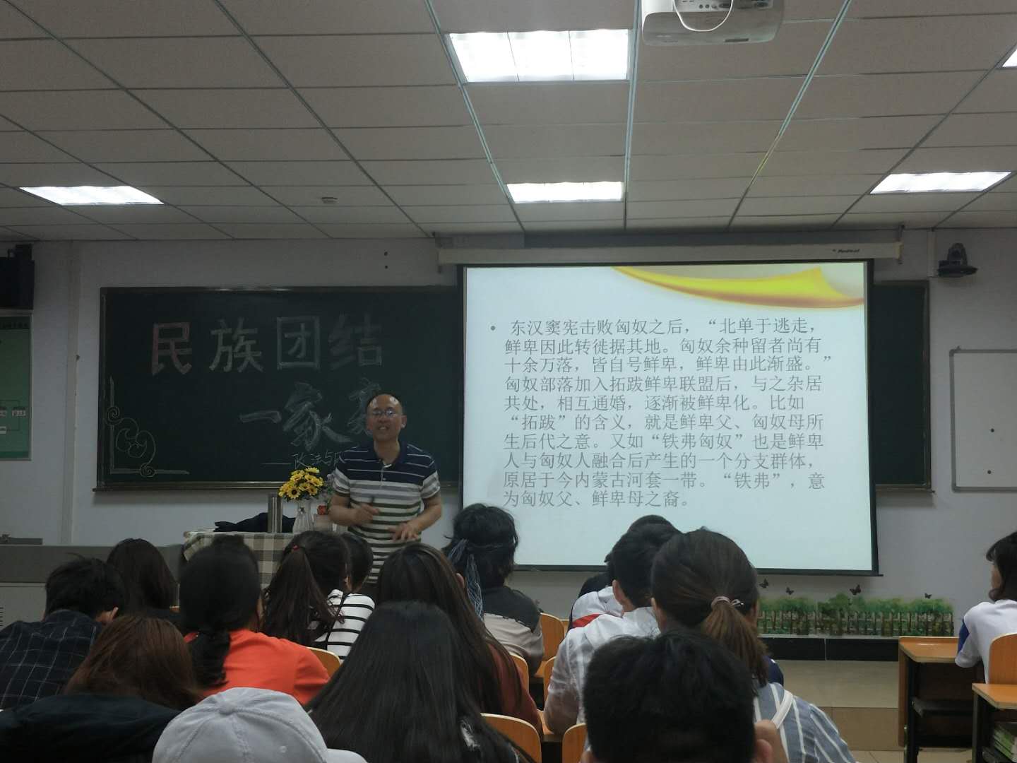 该讲座主要谈了两个问题,一是从中国境内各民族的形成都是多源多流这一角度,具体梳理了汉民族形成发展的历史过程,强调其特点是不以血缘区别种族,而是以文化区别种族,该民族不是一个血缘单纯的民族。同时还分析了蒙古族、满族等少数民族也是多源多流的特点。二是梳理了汉族与各少数民族在历史上是休戚与共、相互依存的关系。具体表现有政权上的合作与参与、经济文化上的密切往来,相互促进等等。从而论证了汉族与少数民族之间多源多流、源流交错的复杂关系,形成了你中有我、我中有你的民族关系格局。讲座从下午7:00开始,到9:00结束,为时近两个小时。广大师生通过该讲座进一步夯实各族师生共同团结奋进的思想基础,达到了宣传教育的目的,取得了良好的效果。