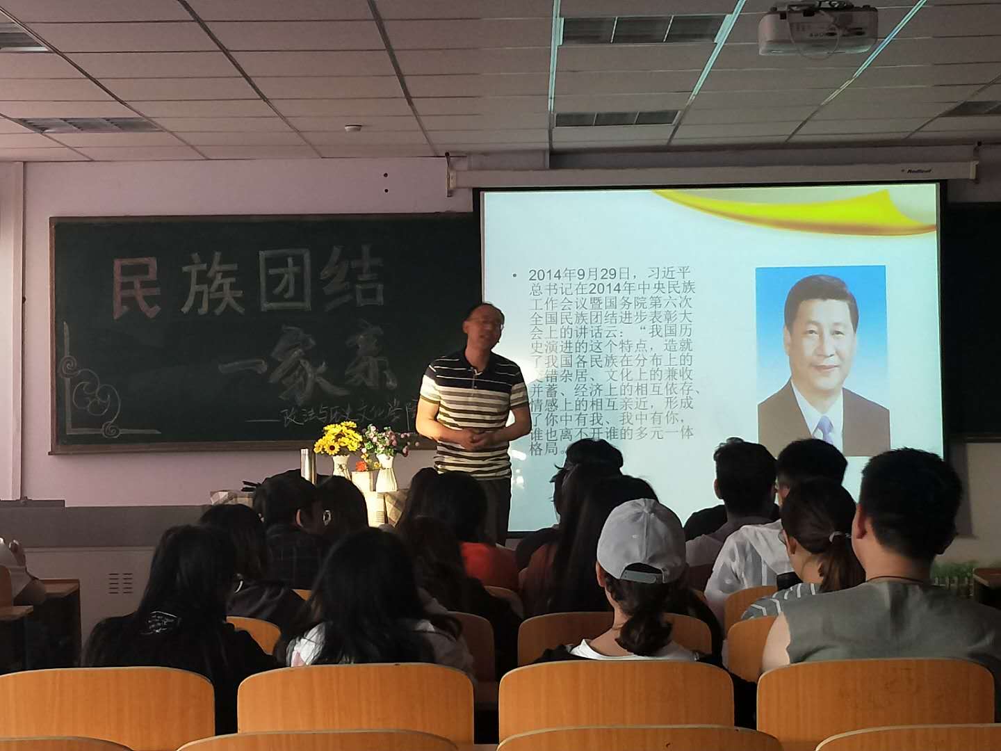 为全面深入学习贯彻党的十九大精神和习近平新时代中国特色社会主义思想,进一步落实中央民族工作会议精神,推进beat365民族团结创建工作深入开展,政史学院于2018年5月25日开展了“民族团结进步大讲堂”讲座活动。该讲座由政史学院教师王英维主讲,题目是《从各民族历史关系上看“中华民族一家亲”》。