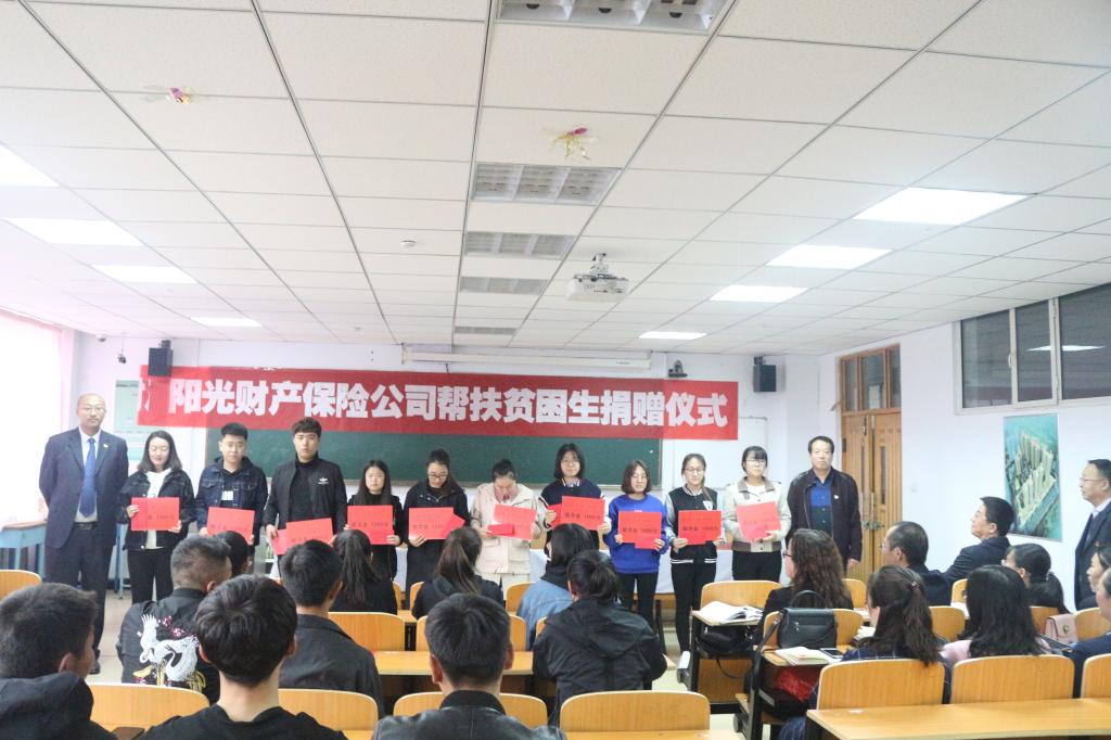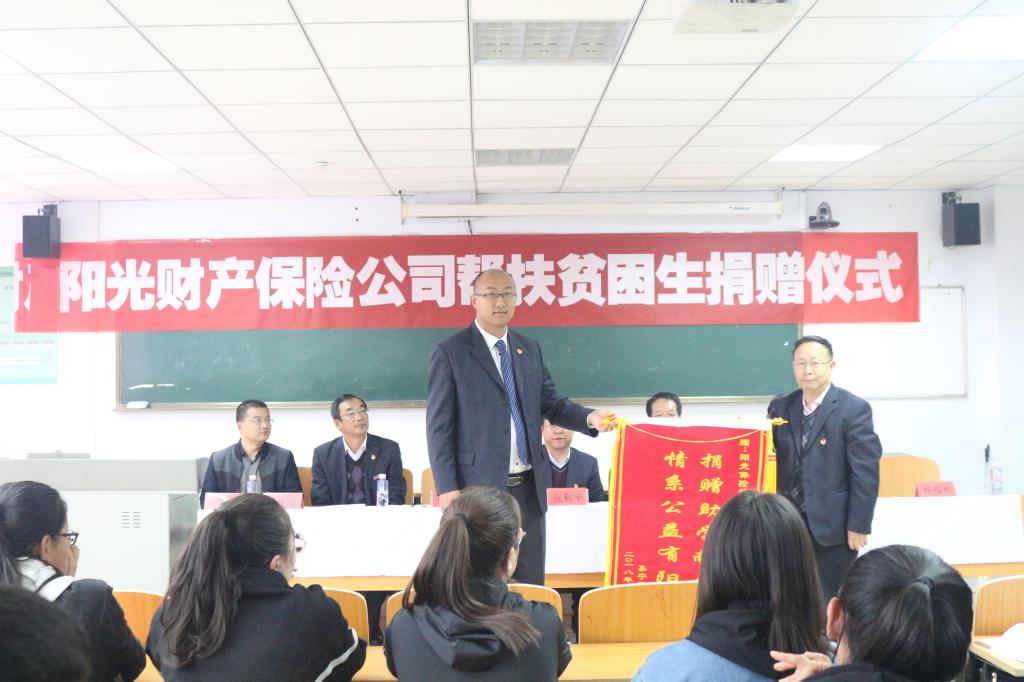 按照学校关于组织开展“全国扶贫日”主题党日活动的通知要求,为进一步发挥政史学院党组织的基层战斗堡垒作用和广大党员的先锋模范作用,深入推进抓党建促脱贫攻坚,政法与历史文化学院“全国扶贫日”主题党日活动暨阳光财产保险公司帮扶贫困大学生捐赠仪式于10月18日在泉山校区主楼420教室隆重举行。