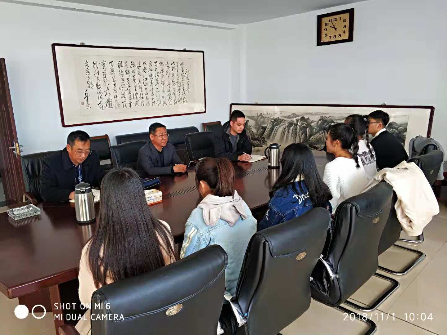 2018年11月1日上午,校党委副书记、纪委书记张利平在行政楼403会议室与政法与历史文化学院六位新发展党员集体谈话。政法与历史文化学院党总支书记兰林世、学生支部书记韩宁参加会议。