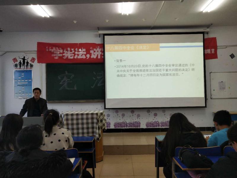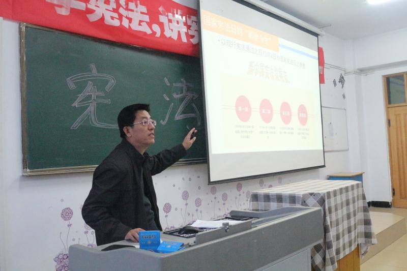 12月17日,政史学院于主教楼421教室举行“学宪法 讲宪法”专题讲座。政史学院党总支副书记武勇以“学习宪法知识,弘扬宪法精神,维护宪法权威”为题对国家宪法日的“前世今生”、现行宪法的架构和主要内容、2018年宪法修正案的亮点进行了精彩的讲解。