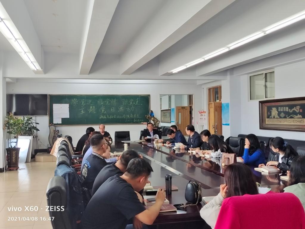 2021年4月8日下午,政法与历史文化学院党总支于泉山校区主教楼409会议室召开“学党史 悟党情 跟党走”主题党日活动,政史学院全体师生党员参加活动。